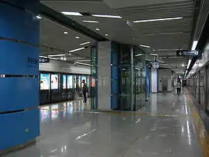 OCT station (simplified Chinese: 华侨城站; traditional Chinese: 華僑城站; pinyin: Huáqiáochéng zhàn; Jyutping: Waa4 Kiu4 Sing4 Zaam6), also referred to as Overseas Chinese Town station in English, and formerly known as Huaqiaocheng station, is a station on Line 1 of the Shenzhen Metro. It opened on 28 December 2004. It is located underground at Shennan Dadao (Chinese: 深南大道), near Shenzhen Bay Hotel (simplified Chinese: 深圳湾大酒店; traditional Chinese: 深圳灣大酒店),[1] in Nanshan District, Shenzhen, China. The station is named after Overseas Chinese Town (OCT) (simplified Chinese: 华侨城; traditional Chinese: 華僑城).[2] It is also located close to Splendid China (simplified Chinese: 锦绣中华; traditional Chinese: 錦綉中華) and China Folk Culture Village (Chinese: 民族文化村).[3]
