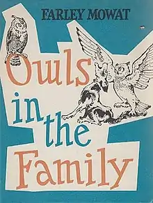 Owls in the Family is a novel by Farley Mowat, first published in 1961. Like many of Mowat's novels it focuses on the relationship between a child and their pets, in this case the pets being two horned owls.[1] It draws on Mowat's own experiences as a child in rural Canada.[2] Mutt, the dog from Mowat's other book, The Dog Who Wouldn't Be (1957) makes a brief appearance.[1] The novel is considered a Canadian classic.[2]