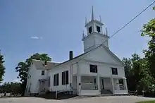The Oxford Congregational Church and Cemetery is a historic church and cemetery in Oxford, Maine, located on the east side of King Street, 0.2 miles (0.32 km) north of its junction with Maine State Route 121. Built in 1842-3, the church is architecturally significant as a good local example of Greek Revival and Gothic Revival style, and is artistically significant for a decorative stenciled trompe-l'œil artwork on the ceiling and sanctuary end wall. The property was listed on the National Register of Historic Places in 1994.[1]