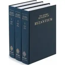 The Oxford Dictionary of Byzantium (ODB) is a three-volume historical dictionary published by the English Oxford University Press. With more than 5,000 entries, it contains comprehensive information in English on topics relating to the Byzantine Empire. It was edited by Alexander Kazhdan, and was first published in 1991.[1] Kazhdan was a professor at Princeton University who became a Senior Research Associate at Dumbarton Oaks, Washington, DC, before his death. He contributed to many of the articles in the Dictionary and always signed his initials A.K. at the end of the article to indicate his contribution.