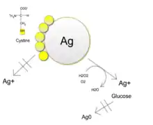 Oxidative dissolution of AgNPs is attenuated in biological systems by components found in the cytosol, such as cysteine and glucose.