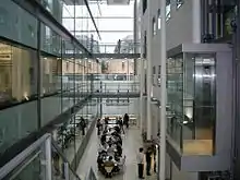 The University of Oxford is made up of thirty-nine semi-autonomous constituent colleges, four permanent private halls, and a range of academic departments which are organised into four divisions.[14] All the colleges are self-governing institutions within the university, each controlling its own membership and with its own internal structure and activities. All students are members of a college.[15] It does not have a main campus, and its buildings and facilities are scattered throughout the city centre. Undergraduate teaching at Oxford consists of lectures, small-group tutorials at the colleges and halls, seminars, laboratory work and occasionally further tutorials provided by the central university faculties and departments. Postgraduate teaching is provided in a predominantly centralised fashion.