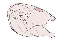 Oysters are two small, round pieces of dark meat on the back of poultry near the thigh,[1] in the hollow on the dorsal side of the ilium bone. The anatomical name of the muscle is iliotrochantericus caudalis.[2]