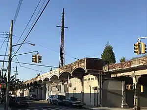 As of 2020, Ozone Park station exists in ruins.[5] Electric utility poles and Pennsylvania Railroad-era signal bridges also adorn the right of way.