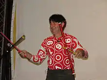 Péter Frankl (born 26 March 1953 in Kaposvár, Somogy County, Hungary) is a mathematician, street performer, columnist and educator, active in Japan.[3] Frankl studied mathematics at Eötvös Loránd University in Budapest and submitted his PhD thesis while still an undergraduate. He holds a PhD degree from the University Paris Diderot as well. He has lived in Japan since 1988, where he is a well-known personality and often appears in the media. He keeps travelling around Japan performing (juggling and giving public lectures on various topics). Frankl won a gold medal at the International Mathematical Olympiad in 1971. He has seven joint papers with Paul Erdős,[4] and eleven joint papers with Ronald Graham.[5] His research is in combinatorics, especially in extremal combinatorics. He is the author of the union-closed sets conjecture.[6]