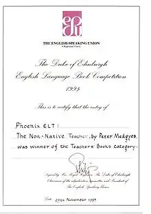 - ↑ Medgyes, Péter (1999). The non-native teacher (2nd ed.). Ismaning: Hueber. ISBN 3-19-006631-0. OCLC 48622336.