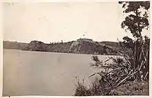 At the end of Bluff Road, where the original Great South Road reached the Waikato River, a 15 m (49 ft) x 14 m (46 ft) stockade was built in 1862 on an older pā, which probably had five terraces below the stockade. It secured the Te Ia landing place, which was used for supplies throughout the subsequent war.[13] The site is now covered by trees.[14]