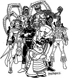 Original founders include creators Richard Dominguez, Carlos Saldaña, Jose Martinez, and Fernando Rodriguez.[3] The majority of members lived in California, leaving Dominguez (who lived in Texas) as the self-described "lonely Tejano", but the group was also associated with Oscar Loya and the ¡Ka-Boom! Estudio group from Mexico.