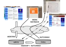 PADICAT is a system based on the implementation of several software that allow web pages to be collected, stored, organized, preserved and permanently accessed. Later to analysis phase and software test was determined that be used Heritrix[12] software, applied in most capture of digital resources projects. This is a software charge to compile web pages as the user sees when surf the Internet and store it in compressed files with ARC or WARC extension. Then, Heritrix software is complemented by NutchWax,[13] or by combination with Hadoop[14] and Wayback,[15] doing an indexing process to compiled information that will permit use these index for localize collection resources from query interfaces: Wera,[16] that permits search from keywords through generated indexes by NutchWax; and Wayback, that lets consult by URL in generated indexes by Hadoop and same Wayback.