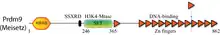 - ↑ Eram MS, Bustos SP, Lima-Fernandes E, Siarheyeva A, Senisterra G, Hajian T, Chau I, Duan S, Wu H, Dombrovski L, Schapira M, Arrowsmith CH, Vedadi M (April 2014). "Trimethylation of histone H3 lysine 36 by human methyltransferase PRDM9 protein". The Journal of Biological Chemistry. 289 (17): 12177–88. doi:10.1074/jbc.M113.523183. PMC 4002121. PMID 24634223.