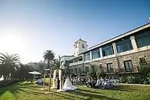 1929 would prove to be a pivotal year in the history of the Palisades,[26] and by that time the town consisted of only about 365 homes and about 1,000 residents who mostly resided in the so-called "Alphabet Streets" neighborhood, although residential construction was now expanding into what would later become the Castellammare, Huntington and Paseo Miramar neighborhoods.[27] On August 18 of that year, the cornerstone was laid for the foundation of the Methodist Episcopal Church on Via de la Paz, which at that time was the community's only church. Directly across the street, planning was underway for the town's first permanent school building which would later become known as "Palisades Elementary", which was dedicated on June 12, 1931.[26]