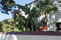 The land that became Pacific Palisades was originally within the boundaries of Rancho Boca de Santa Monica, granted by the governor of California during the Mexican period to Francisco Marquez and Ysidro Reyes in 1839.[14] The Ysidro Reyes Adobe was the first adobe home ever built in Santa Monica Canyon, erected in the year 1838 on land now known as Pampas Ricas Blvd in Pacific Palisades.[15] Sketches of adobe dwelling exist in the collection of the UCLA Library.[16][17] A memorial plaque sits in a boulder on Pampas Ricas Blvd commemorating the adobe house, dedicated in the 1950s.[18] Ysidro Reyes died in 1863. Reyes left his portion of Rancho Boca de Santa Monica to his widow, Maria Antonia Villa, who sold it to developer and railroad magnate Robert Symington Baker in 1875.[19]