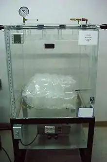 - A laboratory vacuum places controlled stress on a sealed package to test the strength of seals, the tendency for leakage, and the ability to retain sterility.