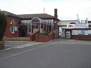 Paddock Wood railway station is on the South Eastern Main Line and Medway Valley Line in south-east England, serving the town of Paddock Wood, Kent. The station also serves the villages of Matfield, Brenchley and Horsmonden, which do not have stations of their own. It is 34 miles 67 chains (56.1 km) down the line from London Charing Cross. The station and all trains calling there are operated by Southeastern.