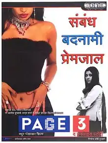 Page 3 is a 2005 Indian Hindi-language drama film directed by Madhur Bhandarkar and produced by Bobby Pushkarna and Kavita Pushkarna about the Page 3 culture and media in the city of Mumbai. It stars Konkona Sen Sharma, Atul Kulkarni, Sandhya Mridul, Tara Sharma, Anju Mahendru, and Boman Irani. The film won three National Film Awards, including the Golden Lotus Award for Best Film.[1][2][3][4]