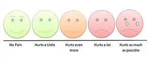 - ↑ Stinson JN, Kavanagh T, Yamada J, Gill N, Stevens B (November 2006). "Systematic review of the psychometric properties, interpretability and feasibility of self-report pain intensity measures for use in clinical trials in children and adolescents". Pain. 125 (1–2): 143–57. doi:10.1016/j.pain.2006.05.006. PMID 16777328. S2CID 406102.