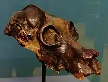 When Palaeopropithecus became extinct is not exactly clear, however scientists have suggested that it could be as recent as about five hundred years ago.[16] The reason behind the extinction of the several species of Palaeopropithecus has been attributed to the presence of humans to the island of Madagascar, the earliest evidence of which dates back to 2325±43 yr BP.[16] Scientists have found fossils of Palaeopropithecus that appeared to have cut marks in them, suggesting flesh removal with a sharp object, indicating that the species was hunted by the earliest colonists to the island of Madagascar as a source for food.[17] The first evidence of the early human butchery to Palaeopropithecus was found by Hon. Paul Ayshford Methuen, in 1911, who traveled to Madagascar expressly to collect bones of the extinct lemurs for the Oxford Museum.[4] The slow locomotion habits of Palaeopropithecus likely made them an easy target for their human predators, who would consume them for food, as well as use the bones for tools.[16] Along with being relatively large, these lemurs became targets because they were active during the day as were humans. Along with their diurnal nature, another factor that led to their extinction was a slow reproductive rate. They were killed faster than they could reproduce.[18]