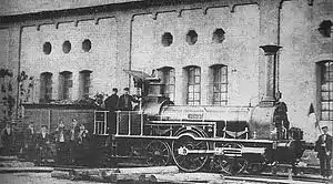 Between 1846 and 1847, the Palatinate Ludwig Railway Company procured four locomotives from the Emil Keßler in Karlsruhe.[1] They were numbers 1 HAARDT, 2 VOGESUS, 3, DENIS, and 4 ALWENS. In 1847 four identical locomotives (5 HUMMEL, 6 RHEIN, 7 LAUTER, 8 QUEICH) were acquired from Maffei. In 1851 the ninth locomotive KOENIG LUDWIG followed, again delivered by Keßler, with works number 200. This was given the operating number 21.[2] The first four locomotives delivered were decommissioned in 1879. The KÖNIG LUDWIG was in service until 1883.