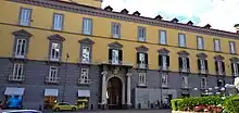 It was damaged by the bombing during World War II. It now houses the Unione degli Industriali of the Province of Naples. The main floor had ceilings with frescoes depicting the Triumph of Judith by Antonio and Giovanni Sarnelli(1749). [1] 40°50′03″N 14°14′29″E / 40.834296°N 14.241480°E