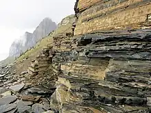 The Burgess Shale is a fossil-bearing deposit exposed in the Canadian Rockies of British Columbia, Canada. It is famous for the exceptional preservation of the soft parts of its fossils. At 508 million years old (middle Cambrian), it is one of the earliest fossil beds containing soft-part imprints.[1]