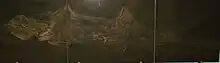 - One of the most emblematic finds of the formation its that of a mother Stenopterygius giving birth living young, like the modern dolphins and marine mammals, being born with the tails first. Other specimens have been found with Embryos inside, but with the bones of them scattered, partly beyond the body limits of the mother.[20] There have been various theories about this scenario: the bones of embryos had been deposited before the body of the adult went to the sea floor, covering the embryo bones and implying that the adult would not be the mother of the embryos.[20] Another option is that a pregnant ichthyosaur on its last moments sank to the bottom and may have struggled for life, given untimely birth to some of the foetuses.[20] Other option follows the presence of foetus bones outside the mother body, where a dead female sank to the bottom, with the water warm enough, helping the putrefaction gases to start to develop while the hydrostatic pressure was too high to be prevented by the body. Scavengers must have started eating from the dead body, until the chamber retaining the pressure was to thin and exploded.[20] These theories where however contested after the study, where it was criticised the absence of the presence of the bottom-current activity in the epicontinental sea covering Central Europe during the Toarcian, pointing that the mother carcass should have been translated after it sank to the bottom floor, probably exploding or expelling its embryos first, that would be transported along.[21]