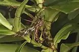 A benthonic Foraminiferan, member of Vaginulinidae inside the family Vaginulinida (Lagenina). Its conch has a Myriapod-like segmented built. |