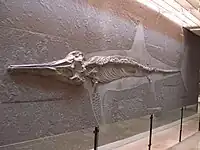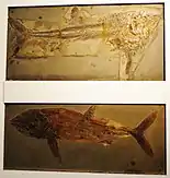 - ↑ Wretman, L.; Blom, H.; Kear, B. P. (2016). "Resolution of the Early Jurassic actinopterygian fish Pachycormus and a dispersal hypothesis for Pachycormiformes". Journal of Vertebrate Paleontology. 36 (5): 16–34. Bibcode:2016JVPal..36E6022W. doi:10.1080/02724634.2016.1206022. S2CID 89338085. Retrieved 19 February 2022.
