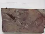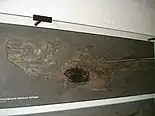 The Sachrang Formation or "Posidonienschiefer" Formation (Whose Vulgar name is "Posidonia Shale") is a geological formation of southwestern Germany, northern Switzerland, northwestern Austria, southeast Luxembourg and the Netherlands, that spans about 3 million years during the Early Jurassic period (early Toarcian stage). It is known for its detailed fossils, especially sea fauna, listed below.[1] Composed mostly by black shale, the formation is a Lagerstätte, where fossils show exceptional preservation (Including exquisite soft tissues), with a thickness that varies from about 1 m to about 40 m on the Rhine level, being on the main quarry at Holzmaden between 5 and 14 m.[1] Some of the preserved material has been transformed into fossil hydrocarbon Jet, specially wood remains, used for jewelry.[2] The exceptional preservation seen on the Posidonia Shale has been studied since the late 1800s, finding that a cocktail of chemical and environmental factors let to such an impressive conservation of the marine fauna.[2] The most common theory is the changes in the oxygen level, where the different anoxic events of the Toarcian left oxygen-depleted bottom waters, with the biota dying and falling to the bottom without any predator able to eat the dead bodies.[3]
