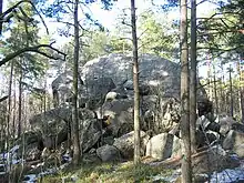 Pallivahankivi is a 10 meter tall glacially deposited rock that is located in the region of Pallivaha. The region of Pallivaha is named after the rock. The rock is associated with a Finnish folkstory, according to the legend, the rock was thrown into its current place by giants from the region of Nunnavuori.[1][2] Later legends say that the rock became a shelter for criminals who lived in the area.[3]