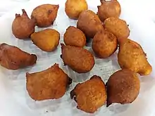 Palm fruit juice or Tal er Rosh, (Bengali: তালের রস) is sweet sap extracted from the fruit of palm trees in summer. It contains vitamins A, B, C, and the elements zinc, calcium, potassium, and iron. It also contains antioxidants.[1] This is a symbolic and well-known food in Bengal in the summer. Numbers of popular Bengali foods are made using this palm fruit juice such as palm candy, pitha, pays, kheer, and taller boora (Bengali: তালের বড়া).[2]