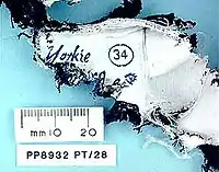 Among the mysteries surrounding the timer fragment is how, when, and by whom, it was found. "A lover and his lass" found the fragment while strolling in the forest, according to one police source close to the case. A man found the fragment while walking his dog, according to another version.[17] Or, in yet another story from a former investigator, police found it while combing the ground on their hands and knees.[18] The latter became the accepted version when evidence was given at the trial. Testimony indicated that on January 13, 1989, three weeks after the bombing, two Scottish detectives engaged in a line search in woods near Lockerbie came upon a piece of charred material, later identified as the neckband of a grey Slalom-brand shirt. Because of the charring, it was sent for analysis to the DERA forensic explosives laboratory at Fort Halstead in Kent. It was not until May 12, 1989, that Dr Thomas Hayes examined the charred material. He teased out the cloth and found within it fragments of white paper, fragments of black plastic, a fragment of metal and a fragment of wire mesh—all subsequently found to be fragments of a Toshiba RT-SF 16 and its manual. Dr Hayes testified that he also found embedded a half-inch fragment of green circuit board.