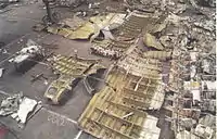 The reconstruction of container AVE4041 showed blackening, pitting, and severe damage to the floor panel and other areas, indicating that what the investigators called a "high-energy event" had taken place inside it.[6] Though the floor of the container was damaged, there was no blackening or pitting of it. From this, and the distribution of sooting and pitting elsewhere, investigators calculated that the suitcase containing the bomb had not rested on the floor, but had probably been on top of another case, though there was no proof that the explosion had occurred in a suitcase.
