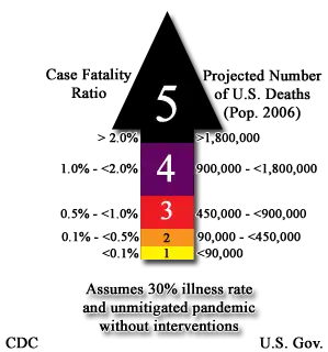 3. 1 2 3 4 5 6 Roos, Robert; Lisa Schnirring (February 1, 2007). "HHS ties pandemic mitigation advice to severity". CIDRAP News. Retrieved August 11, 2007.