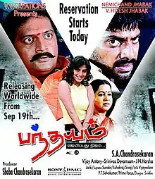 Pandhayam (transl. Bet) is a 2008 Indian Tamil-language action thriller film directed by S. A. Chandrasekhar, starring Nithin Sathya and Sindhu Tolani while Prakash Raj and Radhika play supporting roles. Vijay did a guest role as himself. The music was composed by Vijay Antony with cinematography by Srinivas Devamsam and editing by J. N. Harsha. The film released on 19 September 2008.