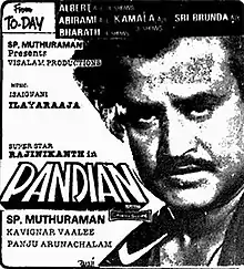 Rajinikanth decided to make a low-budget film with director S. P. Muthuraman. Muthuraman produced the film under his production banner Visaalam Productions, named after his mother. Although not being a producer, Rajinikanth took care of production duties of the film along with M. Saravanan. Rajinikanth decided to act in the film to contribute to the retirement fund of main crew members of the Muthuraman team who were regulars in most of the latter's films.[3] The film title was initially titled Nanban (transl. Friend) before being retitled to Pandian.[4][2] It was Muthuraman's penultimate film as director,[5] and remade from the 1991 Kannada film Bombay Dada. Prabhakar, who acted as that film's protagonist, portrayed a different role in Pandian, the antagonist.[1][6] Rajinikanth acted in the film without taking any remuneration.[3] This would be the last film in Rajinikanth portrayed a police officer until the release of Darbar (2020).[7]