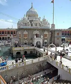 Gurdwara Panja Sahib (Punjabi: ਗੁਰਦੁਆਰਾ ਪੰਜਾ ਸਾਹਿਬ (Gurmukhi), گردوارا پنجا صاحب (Shahmukhi); Urdu: گردوارہ پنجہ صاحب) is a gurdwara located in Hasan Abdal, Punjab, Pakistan. The shrine is considered to be particularly important as the handprint of the founder of Sikhism, Guru Nanak, is believed to be imprinted on a boulder at the gurdwara.