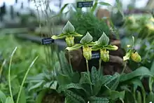 Paphiopedilum venustum album in an Easton, CT greenhouse.