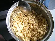 Pörkölt is a Hungarian stew with boneless meat, paprika, and some vegetables.[1] It should not be confused with gulyás, a stew with more gravy or a soup (using meat with bones, paprika, caraway, vegetables and potato or different tiny dumplings or pasta simmered along with the meat), or paprikás, which uses only meat, paprika and thick heavy sour cream). Pörkölt, paprikás and gulyás are considered national dishes of Hungary.