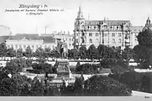 The southern wooded avenue Kastanienallee was cleared in the 1930s and replaced with a large square, which allowed the city's trams to connect Steindamm and Tragheim.[6] This square was also used as a parade route by the Nazis.[4] In 1935 the Königshalle became a garrison mess.