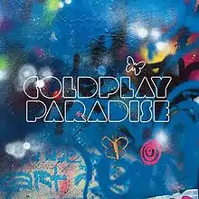"Paradise" is a song by the British rock band Coldplay, released on 12 September 2011 as the second single from their fifth album, Mylo Xyloto.[1] The song received its radio debut at 7:50 a.m. on The Chris Moyles Show (BBC Radio 1) on 12 September 2011.[2][3] According to Coldplay's official website, the single was not initially chart eligible in the United Kingdom, because it was available on iTunes as an "instant grat" (immediate download) when pre-ordering the album.[4] Following the release of the album on 30 October 2011, the song became chart eligible in the UK and entered the UK Singles Chart at number 14, before taking the number 1 spot on its tenth week, becoming the band's second number-one single after "Viva la Vida" in 2008.
