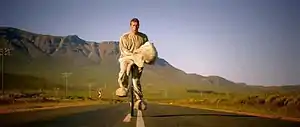 In the video, Chris Martin, dressed as an elephant, escapes from the zoo. He finds an abandoned sharing system bicycle, rides it to Belsize Park London Underground station, and takes the train to Heathrow Airport in an attempt to hitch-hike his way to another country, doing so finally by stowing away inside a suitcase. An aerial shot reveals that his initial destination was Cape Town, South Africa. He is then seen wandering around Johannesburg at one point, walking past Nelson Mandela Bridge and a set of railway tracks in Braamfontein. He then earns enough money, which appears to be ZAR 67.05 (roughly equivalent to GBP 5.34 or US$8.40), by busking on the street, which shows portions of the song's lyrics in sync, to buy a bike; the shopkeeper suggests a unicycle instead. After a seemingly hopeless wander on his new unicycle (in which Martin takes off his elephant head for a second), he comes across three other elephants, who are the rest of Coldplay, playing the song in the veld. Will Champion is dressed as Snorky from the fictional band The Banana Splits, identifiable by his glasses and polka-dot ears. He starts playing with them, and the band eventually play a sell-out stadium concert together, before returning to the veld where they run towards the camera. The video was shot on location in London, Cape Town, the Klein Karoo in the Western Cape and Johannesburg.[17] The zoo that Martin escapes from is Paradise Wildlife Park in Broxbourne, Hertfordshire. The bike shop shown is Woodstock Cycleworks in Woodstock, Cape Town. The concert segment was filmed during Coldplay's Mylo Xyloto Tour concert at the FNB Stadium on 8 October 2011. After performing this song live, the band donned their elephant heads and gloves and pretended to perform as the last minute of the studio recording played. The concertgoers were encouraged to cheer and sing along as if they were actually performing. As of November 2023, the video has over 1.8 billion views on YouTube.