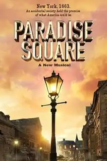 Paradise Square is a stage musical, with music by Jason Howland, lyrics by Masi Asare and Nathan Tysen, and a book by Christina Anderson, Larry Kirwan and Craig Lucas. Set in New York City during the Civil War and the New York City draft riots, the musical follows conflict between Irish Americans and Black Americans. The production is directed by Moisés Kaufman and choreographed by Bill T. Jones, with intimacy direction by Gaby Labotka.[1] The musical opened on Broadway at the Ethel Barrymore Theatre on April 3, 2022.