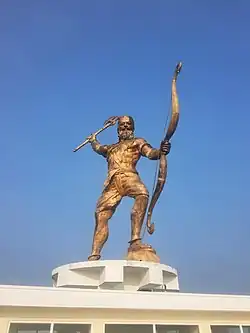 An idol of Parashurama made entirely of bronze with bow and ax in hand can be seen here. Parashurama Theme Park was inaugurated on 27 January 2023. A 33 feet tall, 15 ton heavy bronze statue of Parashurama has been installed at a height of 57 feet from the ground.15 tons of bronze used for the construction of this statue of Parashurama.[5]