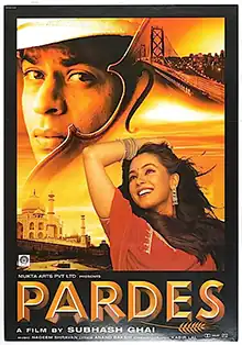 Pardes (transl. Foreign land) is a 1997 Indian Hindi-language romantic drama musical film directed, produced, and co-written by Subhash Ghai. Distributed by Mukta Arts, it stars Shah Rukh Khan, and newcomers Mahima Chaudhry and Apurva Agnihotri in lead roles, with Alok Nath, Amrish Puri and Himani Shivpuri in supporting roles. The film was shot at various locations in the United States (Los Angeles, Las Vegas), Canada (British Columbia, including Vancouver) and India (Uttarakhand and Uttar Pradesh, including Agra).