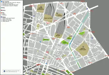 The 10th arrondissement is often referred to as l'Entrepôt. Like all Parisian arrondissements, it is divided into four quartiers (districts):[2]
