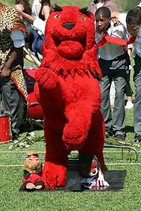 The School's Mascot – The Rampant Lion, with members of the Cadet Band performing the school War Cry.