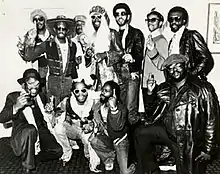 Parliament was an American funk band formed in the late 1960s by George Clinton as a flagship act of his P-Funk collective. Evolving out of an earlier vocal group, Parliament became associated with a more commercial and less rock-oriented sound than its sister act Funkadelic. Their work incorporated Afrofuturism concepts, horn arrangements, synthesizer, and outlandish theatrics.[2] The band scored a number of Top 10 hits, including the million-selling 1976 single "Give Up the Funk (Tear the Roof off the Sucker)," and Top 40 albums such as Mothership Connection (1975).