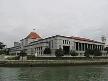 The Parliament House is a public building and a cultural landmark in Singapore. It houses the Parliament of Singapore, and is located in the Civic District of the Downtown Core within the Central Area. Within its vicinity is Raffles Place, which lies across from the Parliament House from the Singapore River, and the Supreme Court's building across the road. The building was designed to represent a contemporary architectural expression of stateliness and authority. The prism-shaped top, designed by President Ong Teng Cheong, was similarly a modernist take on the traditional dome.