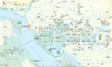 A map of inner Canberra showing the Parliamentary Triangle in red.