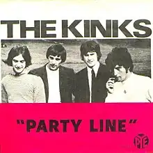 "Party Line" is the opening track from the Kinks' 1966 album, Face to Face. The songwriting is credited to Ray Davies. On one of the earliest covers of the album (CVPV 76032.30), the song is credited R.Davies - D.Davies.